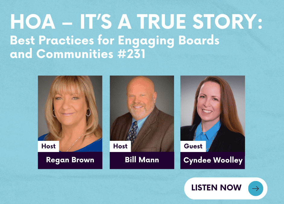 How can homeowners associations and community boards build trust, transparency, and collaboration? In Episode 231 of HOA – It’s A True Story, hosts Regan Brown and Bill Mann sat down with Cyndee Woolley to explore how effective communication can transform communities.