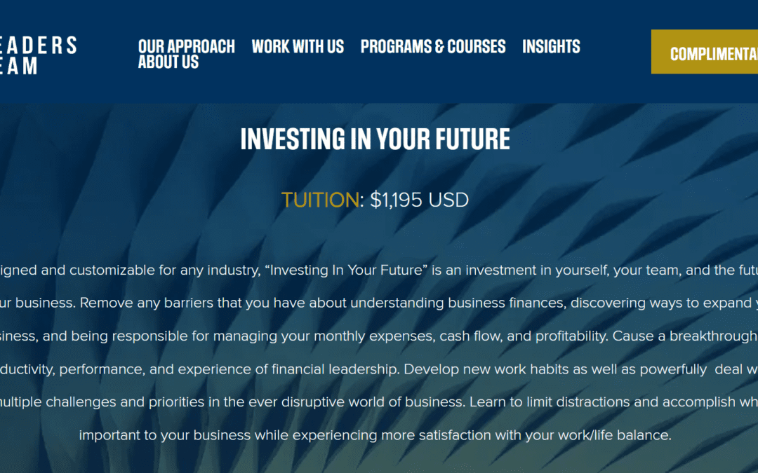 Leaders Team, a globally recognized coaching and leadership consulting firm, is excited to announce the launch of its latest program, “Investing In Your Future.” This innovative initiative is designed to equip emerging managers and leaders with essential financial literacy skills, enabling them to make informed financial decisions, manage cash flows strategically, and optimize sales projections.