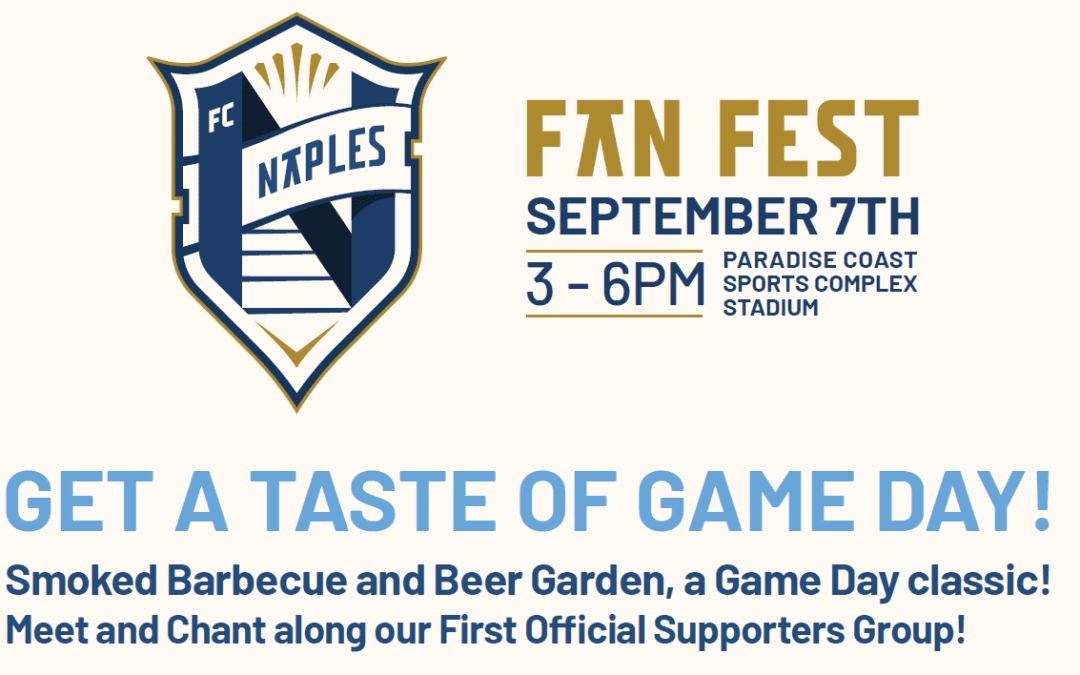 Fans who have not made their season ticket deposit prior to September 3 will still have an opportunity to purchase season tickets during the open event on September 7. Starting at 3:00 pm, fans will be able to enter the Paradise Coast Sports Complex and purchase available season tickets. The FC Naples Fan Fest will give the community a taste of what game day will look like for the upcoming season. Attendees will have the opportunity to meet FC Naples’ Head Coach, Matt “Gaffa” Poland, as well as the club’s first official supporters group and exclusive team merchandise. Additionally, there will be smoked barbecue, beer garden, free games, face painting, and more for the family.