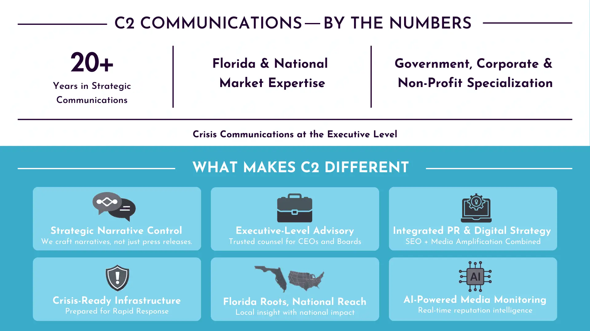 C2 Communications LLC helps government, corporate, and nonprofit leaders protect reputations, manage risk, and build lasting public trust nationwide.
