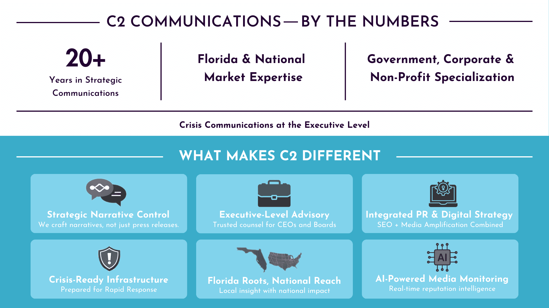 For agencies seeking a certified communications partner with sector expertise, C2 offers both strategic counsel and execution capacity.